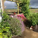 בדירת Appartement In Schuur יש מרפסת עם נופים של גינה.